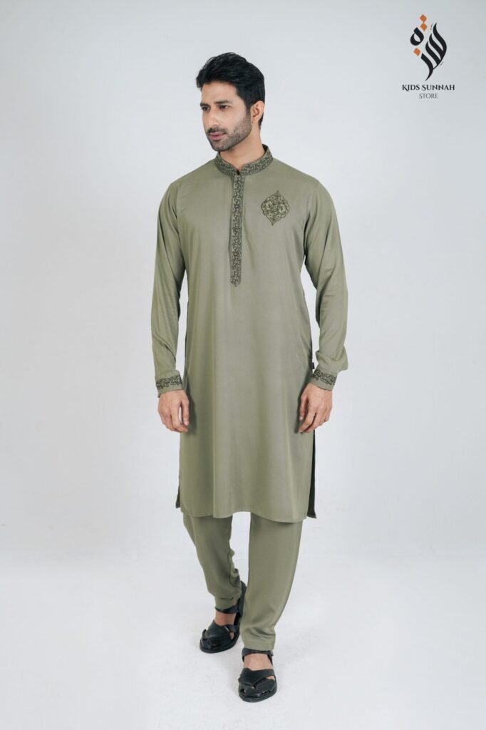 Men’s Gorgeous Royal Olive Essence Panjabi Set